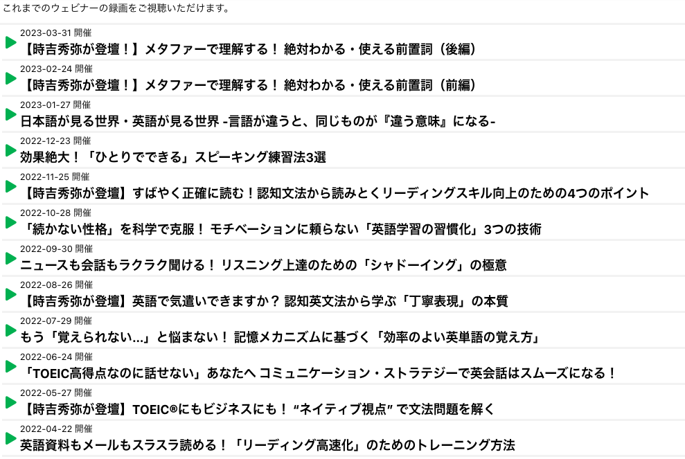 English Companyを運営するスタディハッカー社が、過去に実施したウェビナーを視聴することができます。